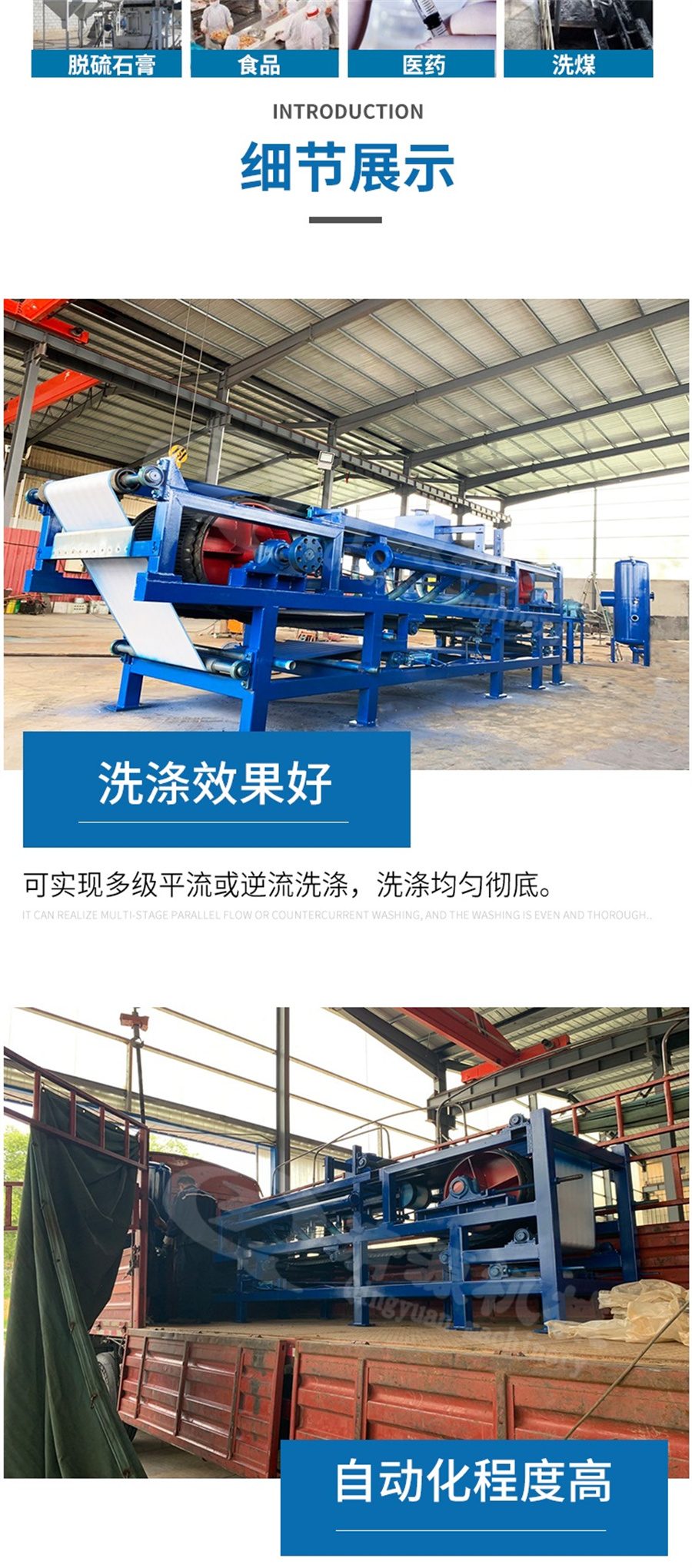 3:過濾工藝方便;濾餅厚度、洗水量。逆流洗滌級(jí)數(shù)、真空度、濾布速度任意調(diào)整,以達(dá)到更佳過濾效果。