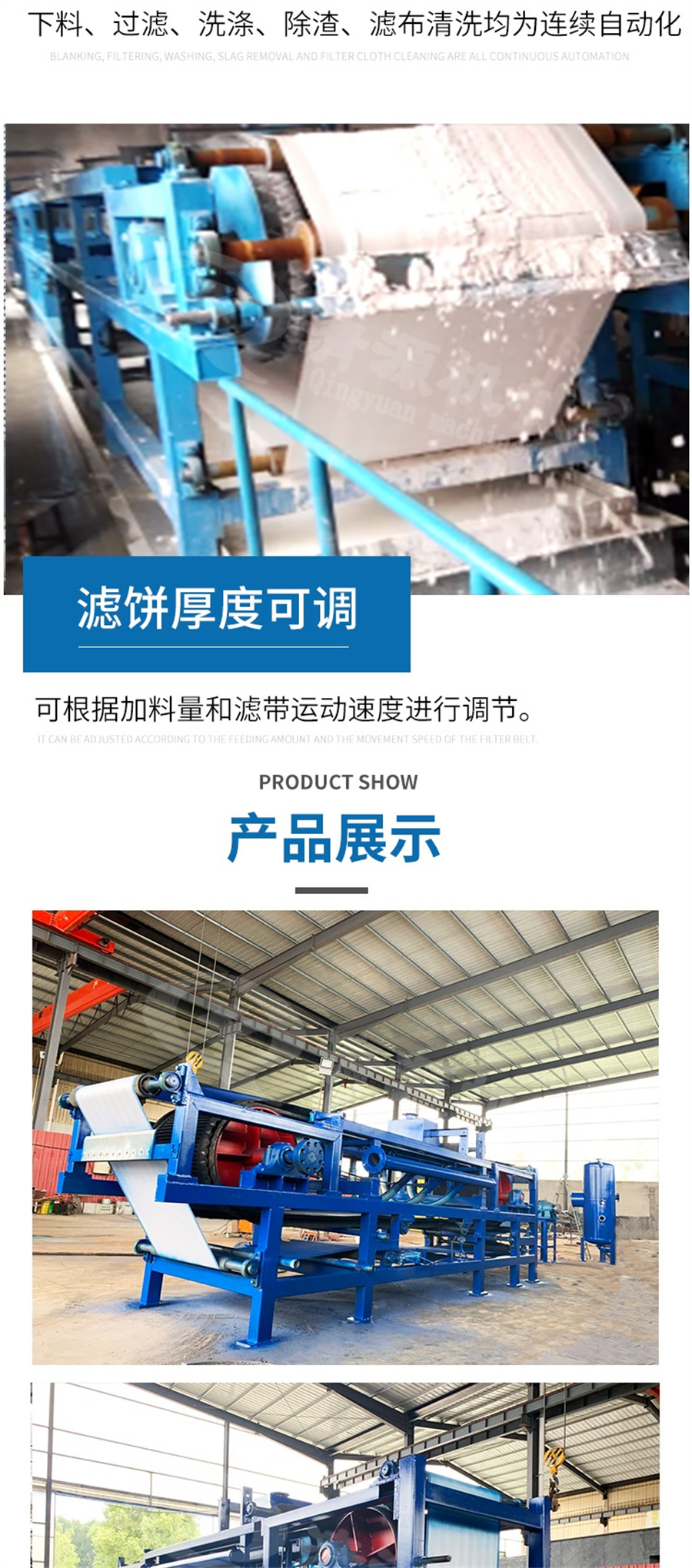 1: 自動化程度高;下料. 過濾. 洗滌. 脫渣. 濾布清洗均為連續(xù)自動化,提高生產(chǎn) 效率降低運行成本,更好地減輕工人勞動強(qiáng)度,改善工作環(huán)境。