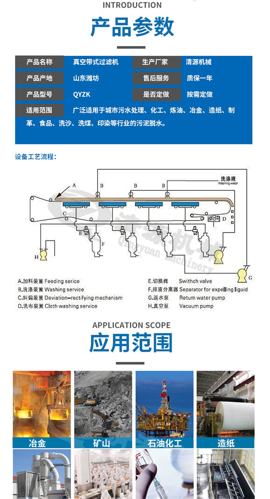 真空帶式過濾機(jī)是一種自動化程度高的新型過濾設(shè)備,該機(jī)以過濾布或濾網(wǎng)為介質(zhì),使料漿水平布置于過濾介質(zhì)之上,充分利用料漿重力和真空吸力實現(xiàn)固液分離。連續(xù)水平帶式真空過濾機(jī)可適用于多種濃度條件下的物料,過濾效率高,因而被重多工業(yè)界優(yōu)先采用。