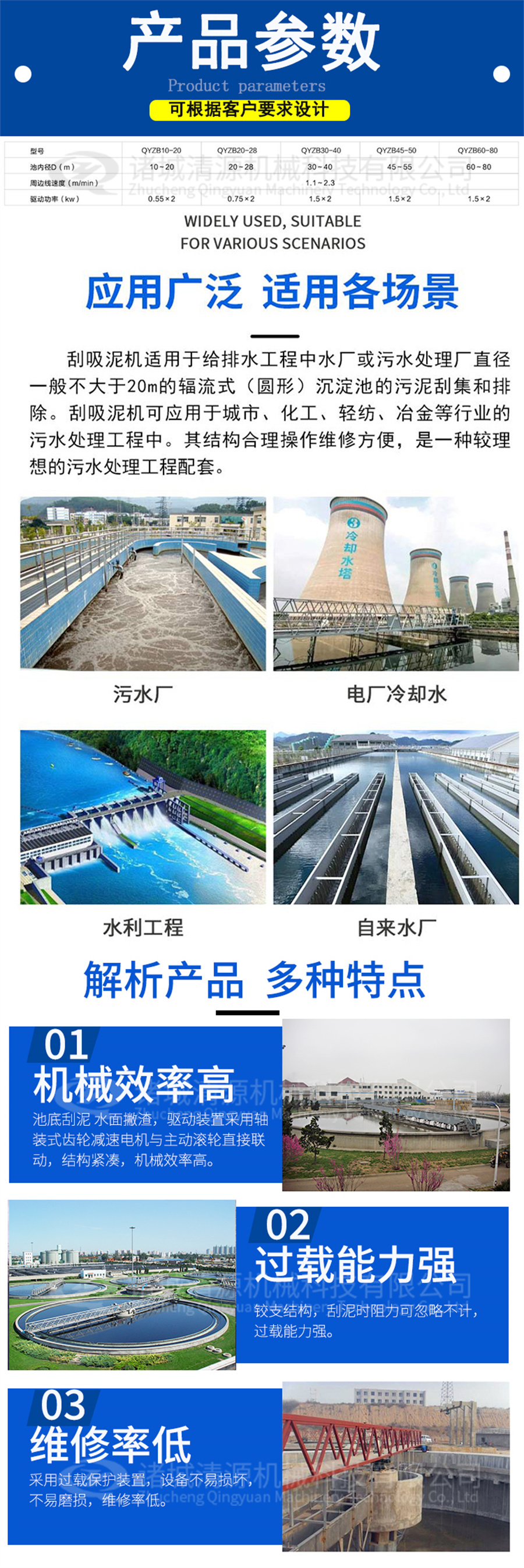 全橋式周邊傳動刮吸泥機(jī)用于污水處理廠、自來水廠以及工業(yè)廢水處理中輻流式沉淀池。將沉降在池底的污泥刮集到池底的集泥坑,池面的浮渣被撇向管式排渣斗。