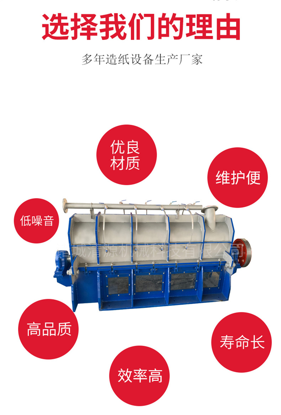 此外我公司還生產(chǎn)碎漿機(jī)、壓力篩、螺旋蒸煮器、雙網(wǎng)濃縮擠漿機(jī)、洗漿機(jī)等造紙機(jī)械設(shè)備,歡迎咨詢訂購(gòu)!