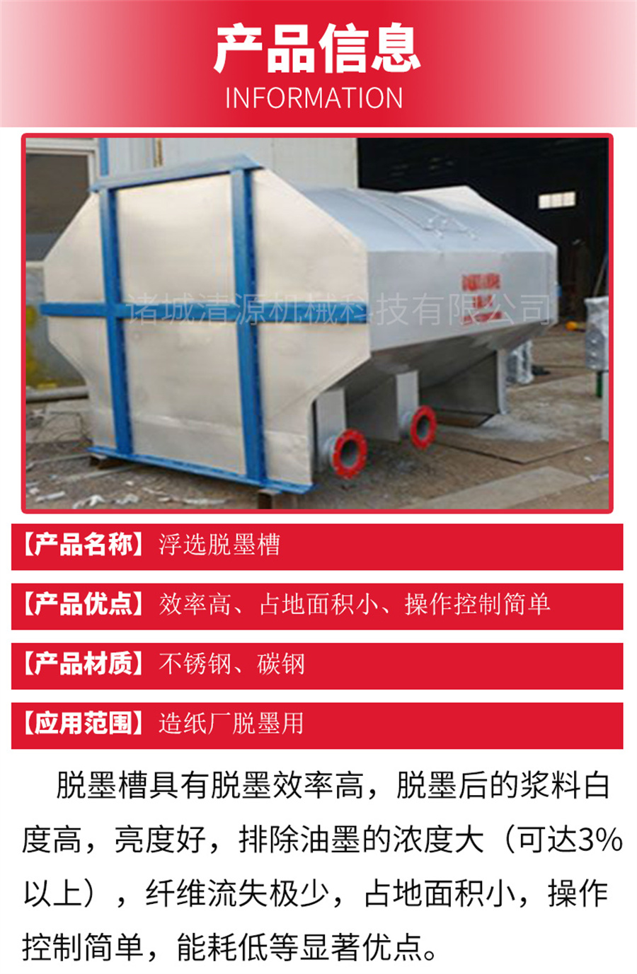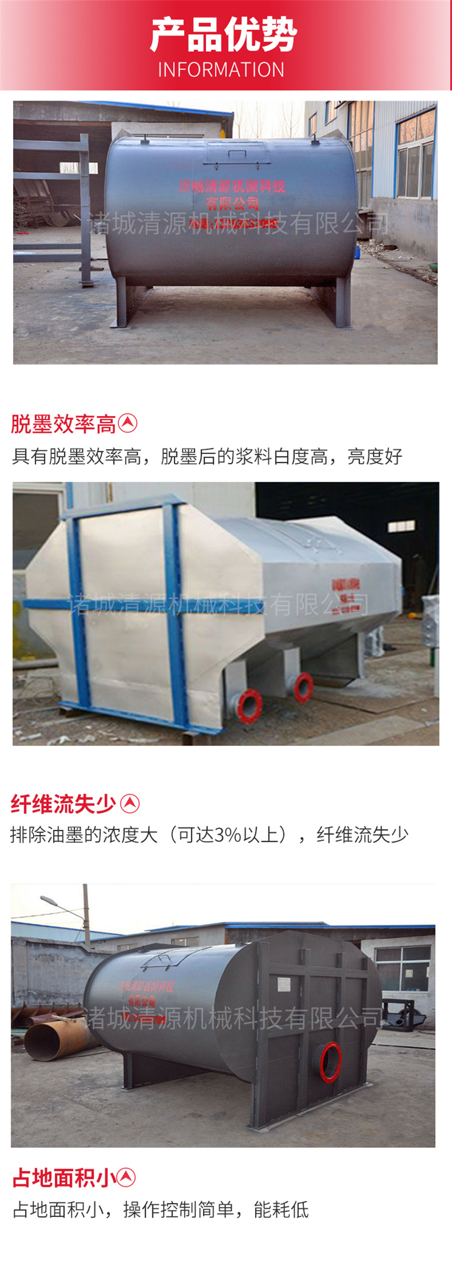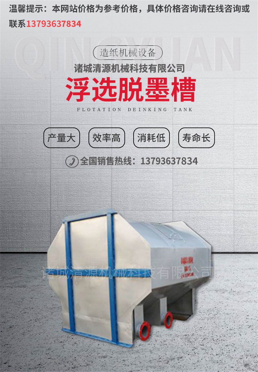 此外,我公司不僅生產(chǎn)脫墨槽,還生產(chǎn)浮選機(jī)組、地埋式污水處理設(shè)備、氣浮機(jī)、污泥壓濾機(jī)、造紙?jiān)O(shè)備等其他設(shè)備,歡迎咨詢(xún)訂購(gòu)!