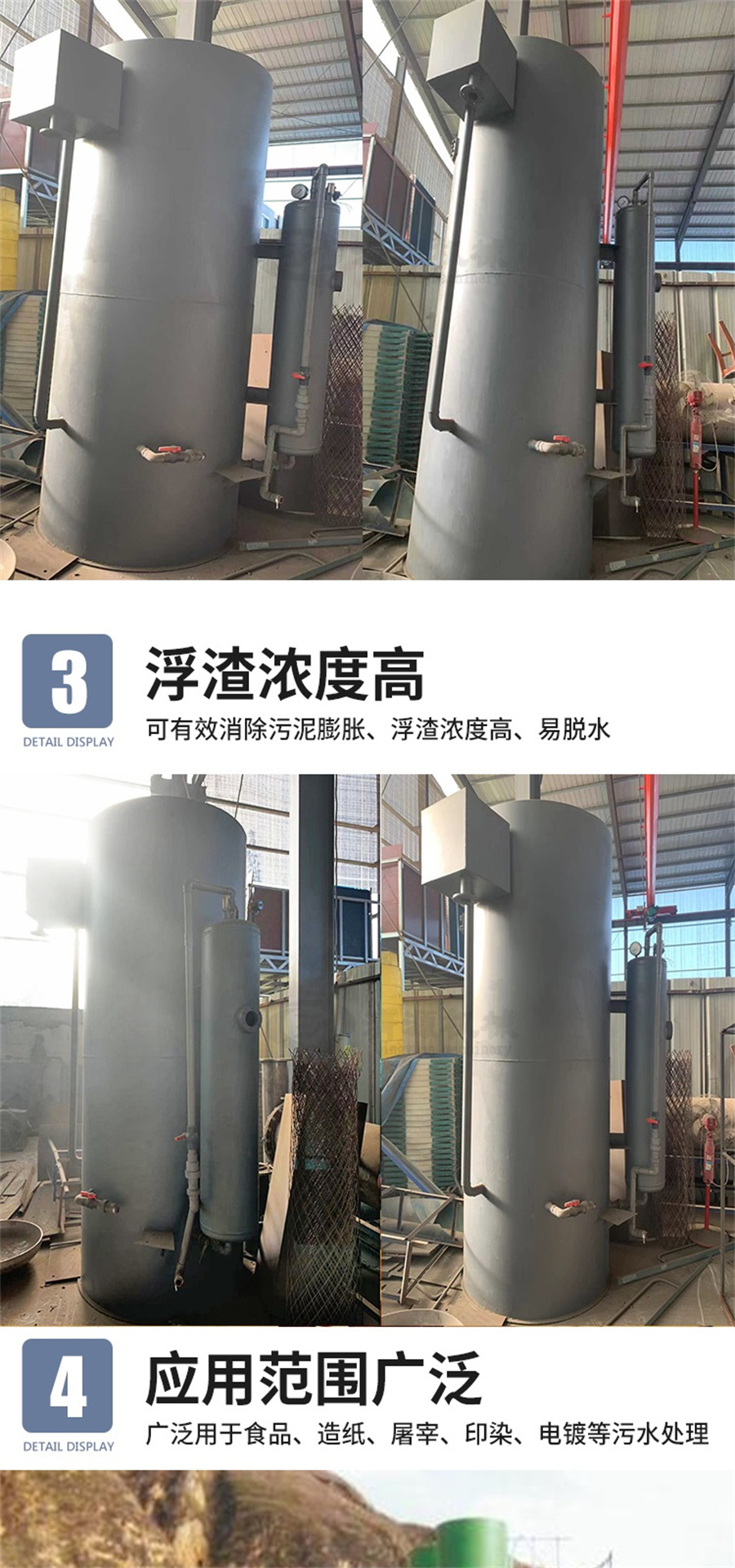 概述:SQF系列豎流式溶氣氣浮機為鋼制結構,工作原理是:空氣通過泵送入壓力容氣罐,在0.5Mpa壓力下被強制溶解在水中,在突然釋放的情況下,溶解在水中的空氣析出,形成大量至密的微氣泡群,在緩慢上升過程中吸附懸浮物,使懸浮物密度下降而上浮,達到去除SS和CODcr的目的。適應于石油、化工、造紙、皮革、印染、食品、淀粉等場合用來去除油或懸浮物。超級溶氣氣浮機特點是:占地面積小,出水達標排放,處理量大,處理水質好。
