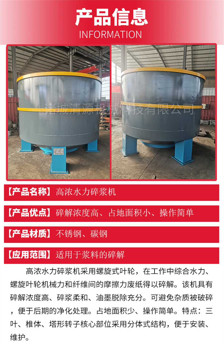 此外,我公司不僅生產高濃水力碎漿機,還生產低濃除渣器、地埋式污水處理設備、氣浮機、污泥壓濾機、固液分離設備、造紙設備等其他設備,歡迎咨詢訂購!